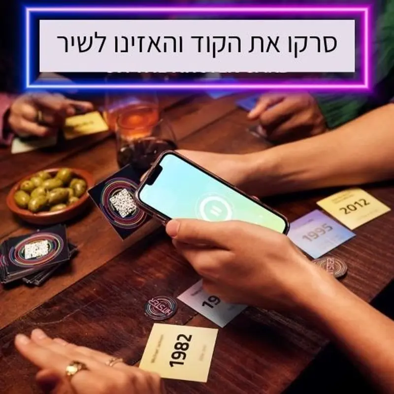 שולפים כרטיס וסורקים באפליקציית Hitster.