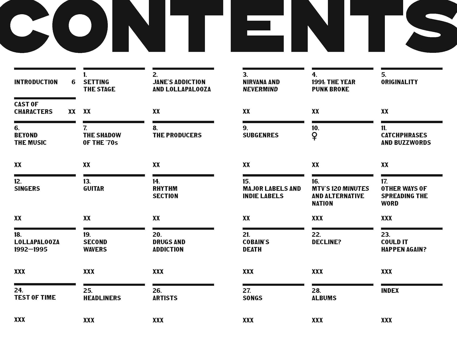 The Lollapalooza music festival The impact of Nirvana Alt-rock’s many subgenres Notable producers of the period The impact of women rockers MTV’s influence Drugs and addiction and much more!