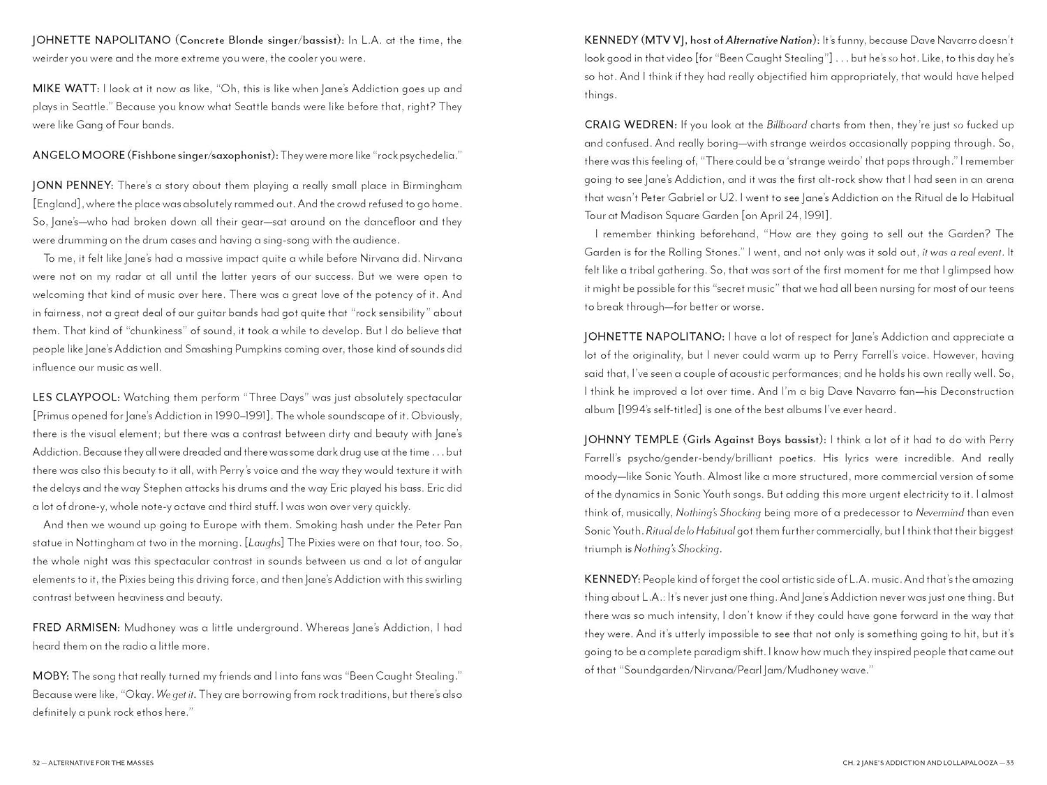 Ian MacKaye (Fugazi, Dischord Records) Frank Black (Pixies) Corey Glover (Living Colour) Moby (solo artist/DJ) Al Jourgensen (Ministry) Les Claypool (Primus) Kennedy (host of MTV’s Alternative Nation) Matt Pinfield (host of MTV’s 120 Minutes) Butch Vig (producer of Nirvana’s Nevermind) Tanya Donnelly (Belly, Breeders) Fred Armisen (Portlandia, Saturday Night Live)