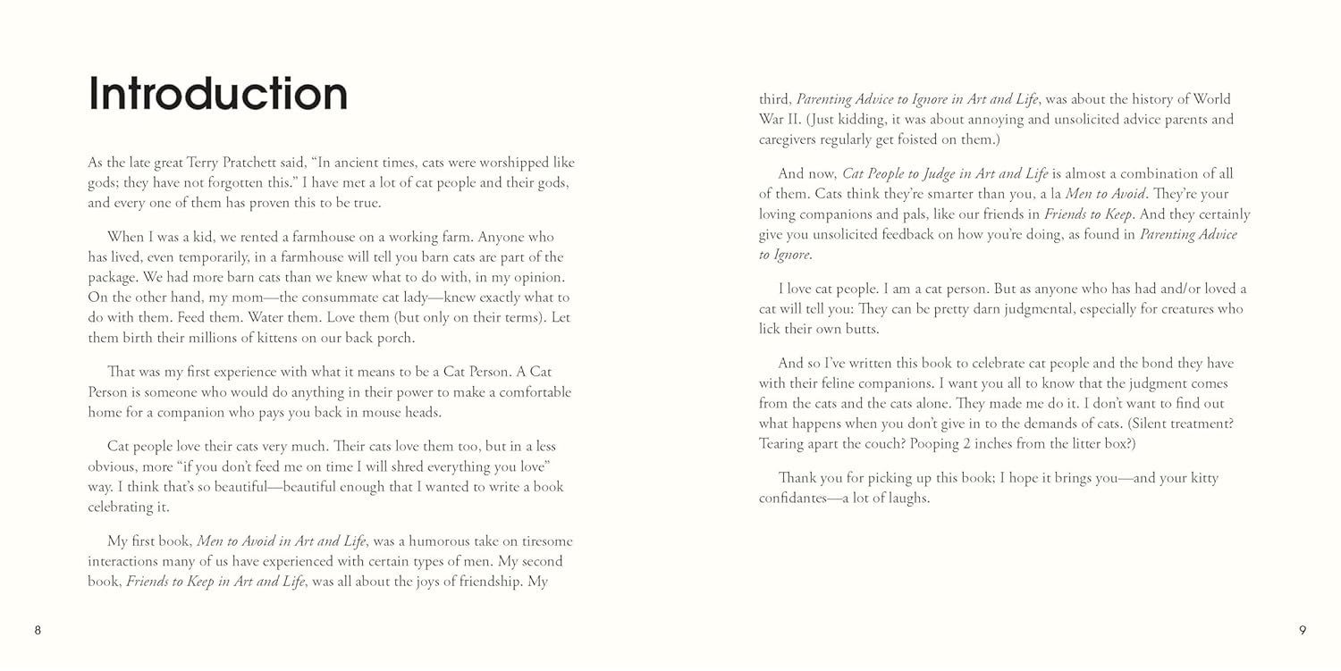 Perfect for: Cat owners and lovers Fans of snarky humor Gift-giving for birthdays, holidays, or pet adoption celebrations Readers who loved Men to Avoid in Art and Life, Friends to Keep in Art and Life, and Parenting Advice to Ignore in Art and Life