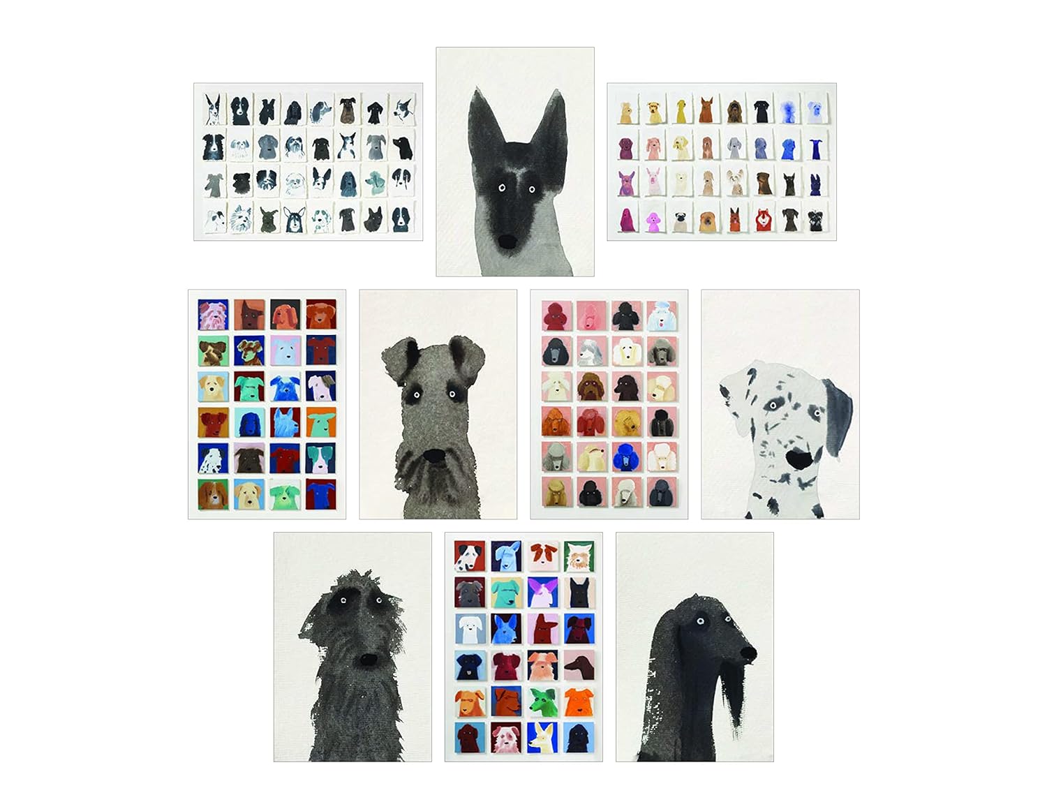 Dog Box celebrates canine of every breed, style, and variety with 100 postcards by ten different artists Terriers, goldendoodles, rottweilers, pugs and rescue mixes – this playful postcard collection includes a pooch for every pet lover. Each of the ten artists express their passion for puppies and dogs in a different way, from noble dog portraits, to skate-boarding bulldogs, and very snuggly corgis. The keepsake box is divided with tabs for postcards by each artist, making this set a perfect gift for every pet parent, rescue advocate, or dog-obsessed child.